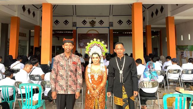 Pasalnya, salah seorang anggota KPPS bernama Lis Watiningsih yang turut dilantik tampak berbeda sendiri karena mengenakan pakaian pengantin.