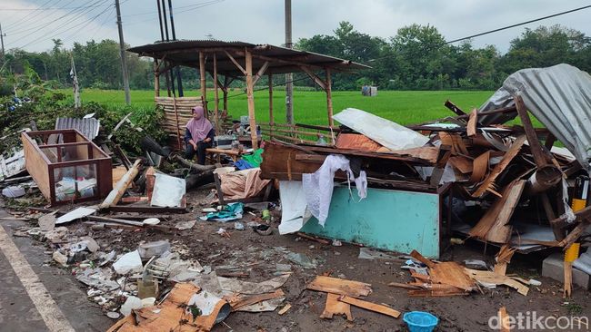 Awalnya, menurut Ismiati, hanya hujan deras. Tetiba ada angin kencang dari arah barat kemudian angin kencang juga dari arah utara hingga menerbangkan warung miliknya.