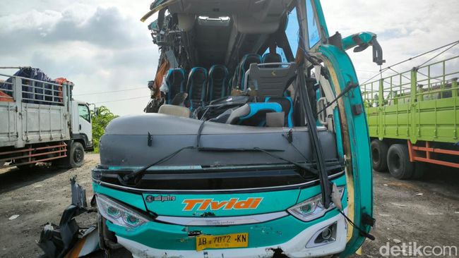 "Penumpang yang duduk di kursi tengah dan belakang dalam kondisi selamat. Bagian depan bus rusak parah. Kursi penumpang di baris depan terlempar ke luar. Ada beberapa penumpang terjepit, ada yang jatuh terlempar di jalan raya. Tadi dibantu warga untuk evakuasi," tutur Handi.
