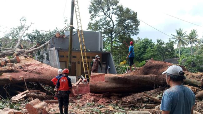 "Benar kejadian siang tadi, petugas yang mendapatkan laporan langsung menuju lokasi. Pohon tumbang di Dusun Pacuh Desa Penataran, karena menimpa rumah warga," terang Ivong saat dikonfirmasi detikJatim, Selasa (30/1/2024).