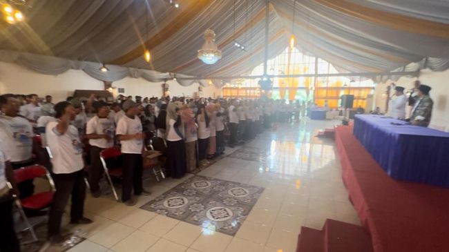 Mengatasnamakan relawan 'Santri Nderek Kiai', relawan berasal dari seluruh desa, masing-masing 10-15 orang per desa se-Gresik berkumpul di Hall RM Rahmawati Jalan Wahidin Gresik, Rabu (31/1/2024).