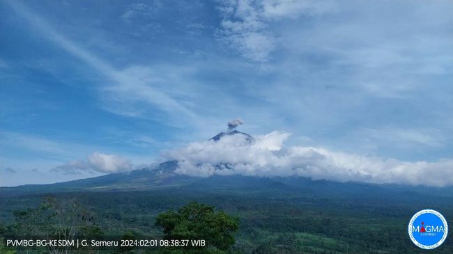 Gunung Semeru mengalami erupsi. Erupsi setinggi 900 meter itu terjadi pukul 08.38 WIB, Kamis (1/2/2024).