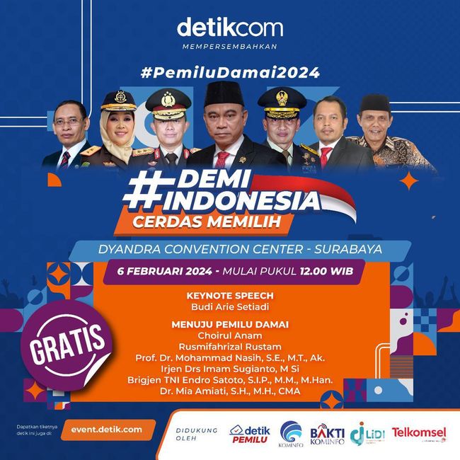 Sebagai informasi, #DemiIndonesia Cerdas Memilih merupakan talkshow kerja sama antara detikcom dengan Kementerian Komunikasi dan Informatika (Kominfo), BAKTI Kominfo, dan Telkomsel. #DemiIndonesia Cerdas Memilih hadir untuk memperkaya wawasan masyarakat dengan literasi Pemilu yang komprefensif.