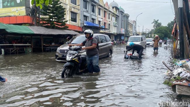 Pantauan detikJatim hingga pukul 11.15 WIB, banjir belum juga surut. Ketinggian banjir diperkirakan mencapai 30 sentimeter.
