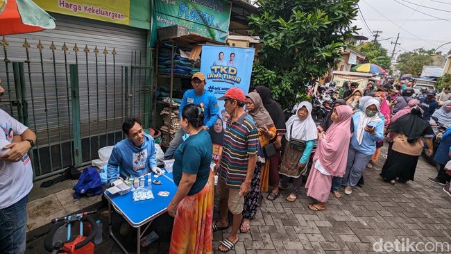 Dalam kegiatan cek kesehatan dan blusukan ini TKD Jatim Prabowo-Gibran juga membagikan 1.000 stiker, 1.000 kalender, 750 kaus gemoy, 500 nasi kotak, dan 500 cek kesehatan meliputi tensi, suhu, kolesterol, asam urat, gula darah dan konsultasi kondisi kesehatan dan resiko infeksi pasca banjir.
