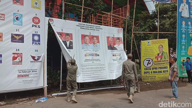 Memasuki masa tenang pemilu 2024, tim gabungan dari Bawaslu Kota Malang, Satuan Polisi Pamong Praja (Satpol PP) Kota Malang, TNI, dan Polri masih sibuk menertibkan alat peraga kampanye (APK). Sebab, masih banyak APK yang belum diturunkan.
