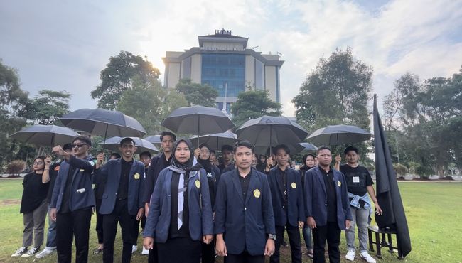 BEM KM Universitas Trunojoyo Madura (UTM) menggelar aksi dengan mengibarkan bendera hitam. Aksi ini sebagai bentuk keprihatinan terhadap situasi demokrasi saat ini.