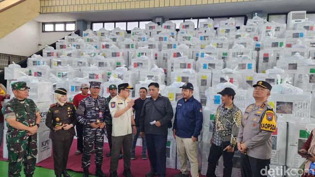 "Pertama kami ingin memastikan semua distribusi dari logistik dan peralatan pemilu sudah sesuai SOP. Tadi untuk Kota Surabaya yang ada di Gedung Pancasila ini kita pastikan semua sudah clear," kata Adhy.