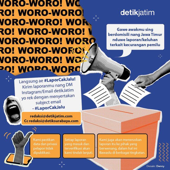 Laporan ini bisa dikirim melalui email redaksi@detikjatim.com CC redaksi@detiksurabaya.com atau bisa dikirim ke DM akun resmi Instagram @detik_jatim