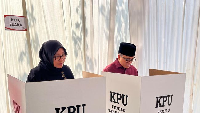 Setelah mencoblos, keduanya diarahkan ke kotak suara untuk memasukkan surat suara yang sudah tercoblos. Sebelum meninggalkan TPS, keduanya tak lupa mencelupkan jari kelingking ke tinta sebagai bentuk sudah menyalurkan hak pilihnya.