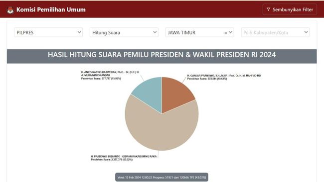 Perkembangan hasil real count KPU Pilpres 2024 di Jatim dapat dilihat di sini.