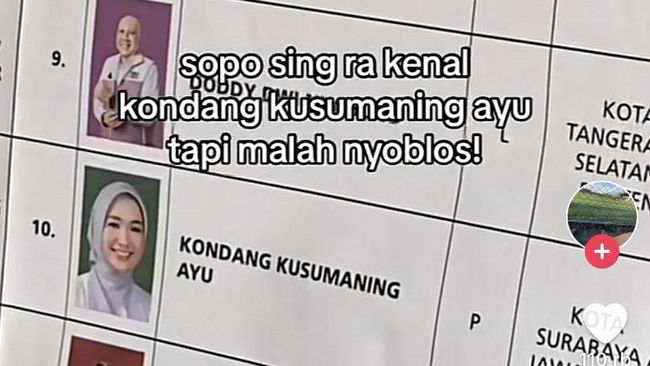 Seperti yang diunggah akun TikTok @yudhistira213_. Dilihat detikJatim, video tersebut bertuliskan "sopo sing ra kenal kondang kusumaning ayu tapi malah nyoblos!" dengan caption "kog isok nyaleg modal ayu". Video tersebut telah dilihat sebanyak 3,2 juta kali di TikTok.