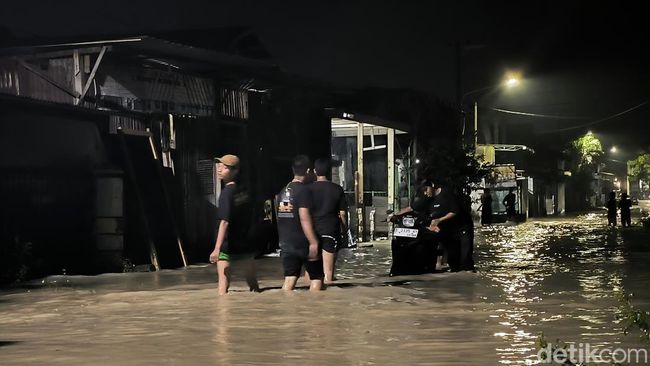 "Tadi sore pas hujan turun tidak banjir. Lah pas agak reda malah banjirnya datang. Selain air kiriman dari Gresik, beberapa saluran air di sini juga nggak bisa menampung. Karena banyak air keluar dari selokan itu," kata Sadewo.