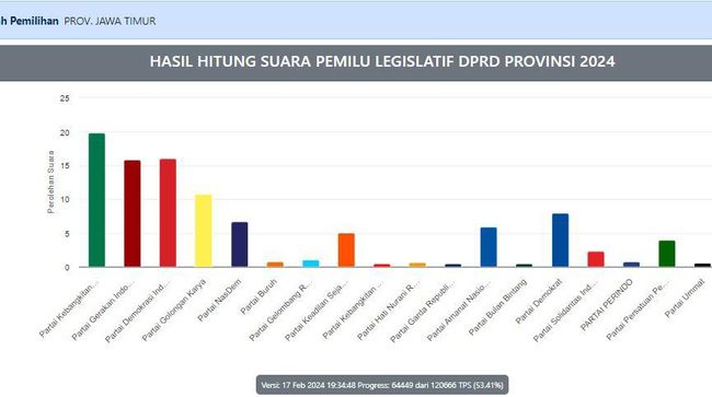 Perkembangan hasil real count KPU Pilpres 2024 di Jatim dapat dilihat di sini.