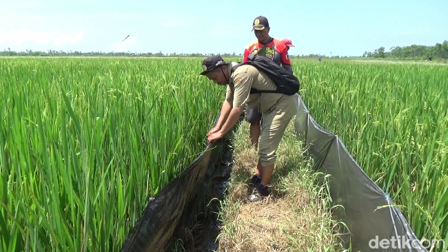 Selain menanggulangi hama tikus dengan pestisida, para petani pun mulai memasang plastik di sekeliling sawah agar tikus tidak masuk ke dalam sawah dan merusak tanaman padi.