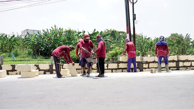 "Karena dinding tanggul ini harus ada pondasinya. Tapi untuk menanggulangi kalau ada hujan lagi, itu ada sandbagnya dulu. Nanti setelah sandbag terpasang, kita kurangi pasang tanggul (permanen). Jadi mengerjakan dinding tanggulnya nanti berjalan sambil bertahap," jelasnya.