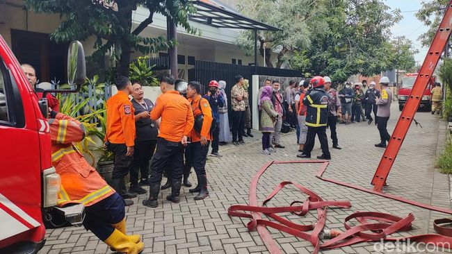 Sebanyak 9 unit mobil pemadam kebakaran dikerahkan ke lokasi. Pantauan detikJatim, petugas dibagi dua regu. Mereka menangani dari dalam dan luar rumah.
