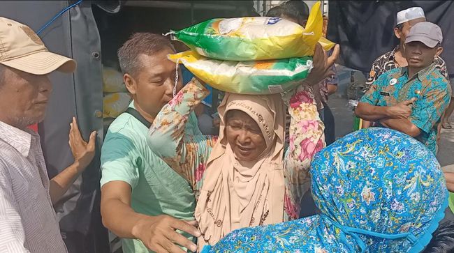Salah seorang warga, Suhadiyah, mengaku rela antre panjang karena beras yang dijual harganya jauh lebih murah dibanding di pasaran yang belakangan terus melambung.