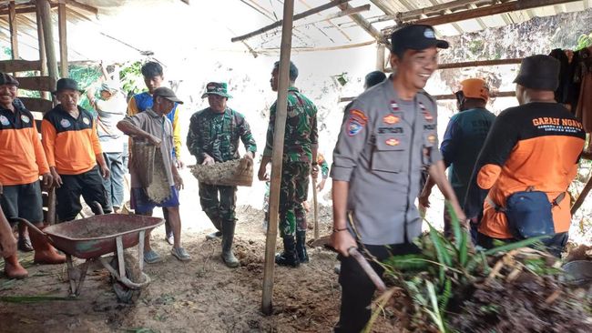 Dia menjelaskan tidak ada korban jiwa, namun ada 4 rumah warga dan 1 sekolah Madrasah Ibtidaiyah (MI) terdampak. Saat ini polisi dan TNI membantu warga membersihkan material longsoran tanah.