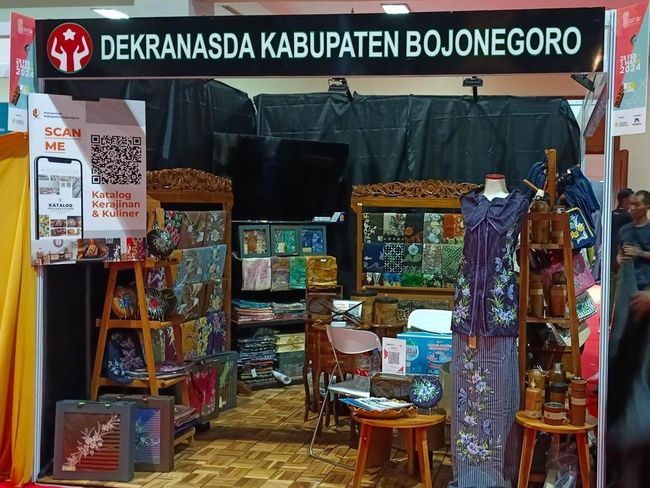 Pj Ketua Dekranasda Kabupaten Bojonegoro Dian Adiyanti Adriyanto menyampaikan pada ajang ini, pihaknya memamerkan berbagai kerajinan Industri Kerajinan Menengah (IKM) dan Usaha Kecil dan Menengah (UKM) seperti, dari kerajinan batik dan kayu jati.