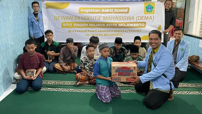 Bakti sosial digelar Dewan Eksekutif Mahasiswa (DEMA) Sekolah Tinggi Ilmu Tarbiyah (STIT) Raden Wijaya. Mereka menyasar Yayasan Penyantun Anak Yatim dan Dhuafa (YPAY) Al Ikhlas di Jalan Brawijaya nomor 149, Kota Mojokerto.