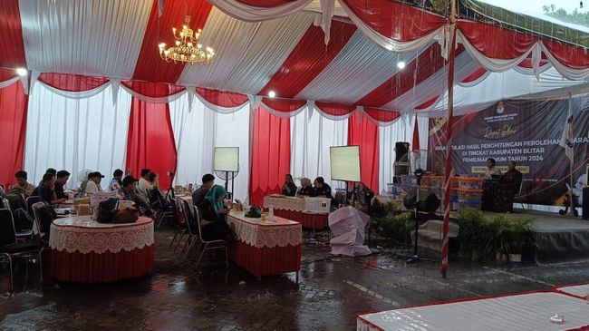 Koordinator Divisi Pencegahan Partisipasi Masyarakat dan Hubungan Masyarakat, Bawaslu Kabupaten Blitar Jaka Wandira membenarkan bahwa proses rekapitulasi perhitungan surat suara terpaksa ditunda karena hujan deras.