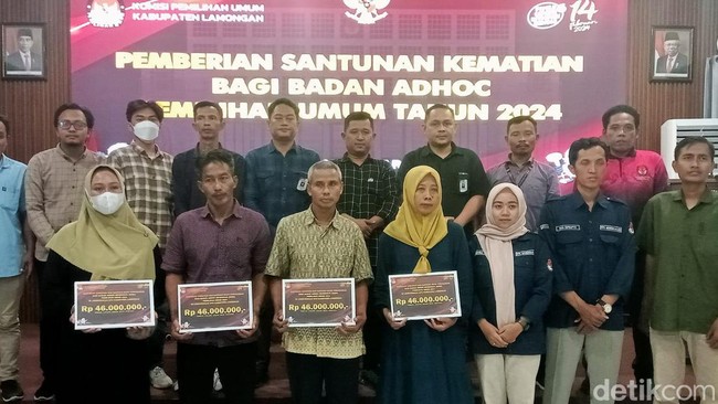 KPU Lamongan memberikan santunan duka kepada keluarga KPPS yang meninggal dunia dalam pelaksanaan Pemilu 2024. Ada 4 anggota KPPS yang mendapat santunan dan diserahkan langsung ke ahli waris mereka.