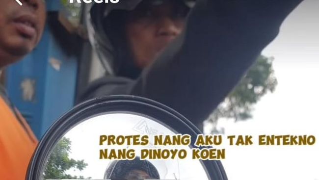 "Protes nang aku, tak entekno nang Dinoyo koen (Protes ke saya, tak habiskan kamu di Dinoyo)," bentak pengendara motor itu, seperti terlihat dalam video yang viral.