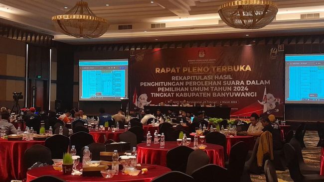 Sebelumnya diberitakan, proses rapat pleno rekapitulasi suara pemilu 2024 di Banyuwangi rampung pada Senin (4/3/2024). Sesuai jadwal, KPU sedianya menuntaskan rapat pleno ini terhitung sejak 28 Februari hingga 2 Maret 2024. Akan tetapi, karena dinamika yang ada, rekapitulasi molor 2 hari.