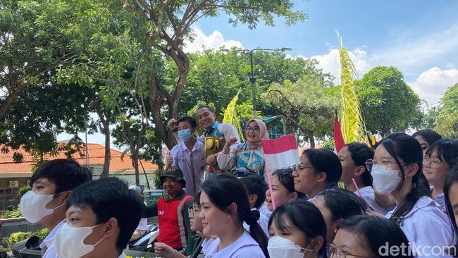 Ketika piala itu melintas, mereka kompak bersorak dan memanggil nama Walikota Eri. Eri dan istrinya pun menyapa warganya dengan senyum yang mengembang.