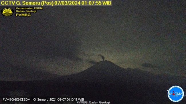 Gunung Semeru mengalami erupsi. Erupsi terjadi sekitar pukul 01.06 WIB, Kamis (7/3/2024).