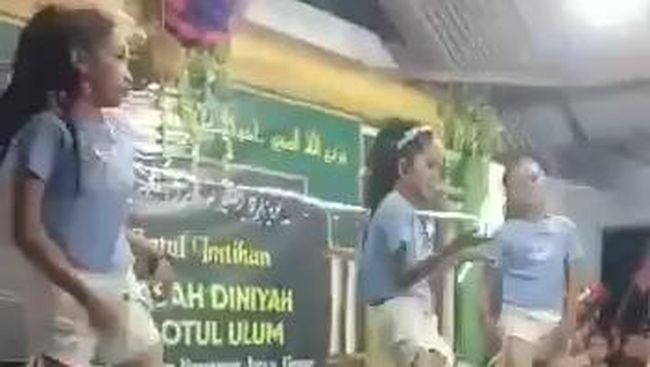 Beredar video di medsos mempertontonkan hal tidak patut. Video itu memperlihatkan tiga bocah perempuan bergoyang 'ngebor' di acara Haflatul Imtihan Madrasah Diniyah di Desa Tundosoro, Kecamatan Kejayan, Kabupaten Pasuruan.