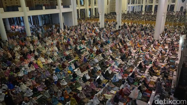 Dari pantauan detikJatim di lokasi, ribuan jemaah pria dan wanita memadati setiap sudut masjid yang berada di kawasan Gayungan Surabaya itu. Parkiran mobil dan motor pun penuh serta saf-saf tampak begitu rapat.