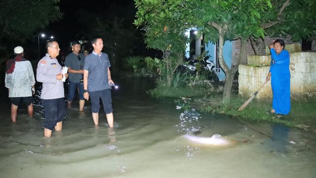 Seperti diketahui, banjir salah satunya menerjang Desa Ledok Wetan. Akibatnya, malam ini warga terpaksa mengungsi, meski demikian petugas juga melakukan patroli di lokasi permukiman yang tergenang banjir.