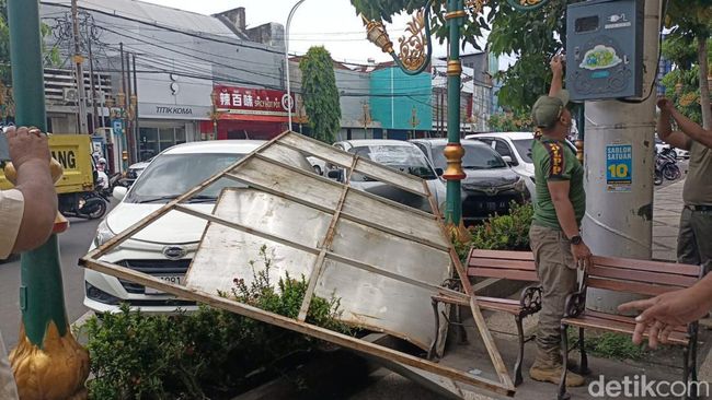 "Ya emang itu membahayakan sebenarnya, sekarang kalau dilihat kan sudah kayak berkarat terus juga di sekitar banyak kendaraan banyak orang, terus pas ada angin kayak gini ya jelas ambruk," terangnya.