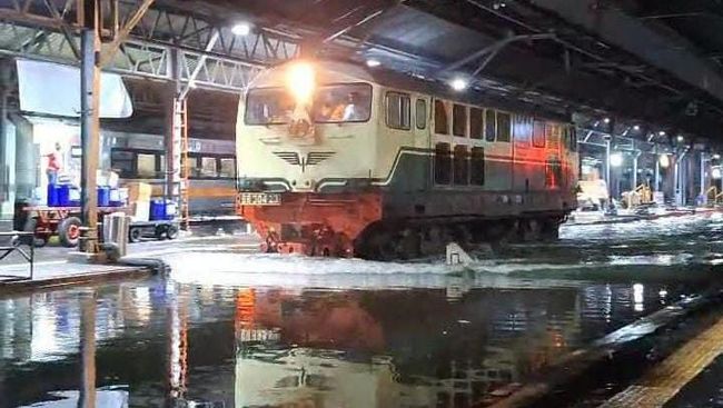 Genangan air mencapai lebih dari 10 cm dari permukaan rel. Demi keamanan dan keselamatan perjalanan, hal itu tidak memungkinkan untuk dilewati kereta api.