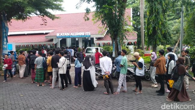 Ratusan mahasiswa tumplek blek menyerbu buka puasa gratis yang disediakan di Sekretariat IKA Institut Teknologi Sepuluh Nopember Surabaya yang berlokasi di Keputih, Sukolilo.
