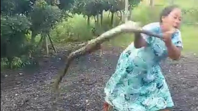 Dalam video yang viral, Mbak Pat berkali-kali membanting ular tersebut sambil terus mengomel. Emosi Mbak Pat pun memuncak. Dia tampak mengesampingkan rasa takutnya terhadap ular berukuran besar tersebut.
