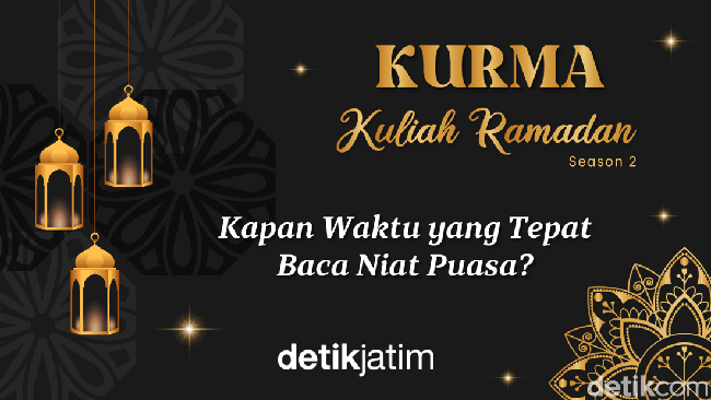 Artikel ini merupakan ulasan dari Kurma (Kuliah Ramadhan). Kurma merupakan kumpulan video pendek produksi detikJatim yang tayang khusus di bulan suci Ramadan. Kurma menghadirkan pendakwah yang mengulas seputar puasa dipadu dengan video sketsa. Memasuki season 2, tahun ini Kurma memberikan sentuhan berbeda dengan mengajak kiai-kiai kampung dan menjelajahi spot ngabuburit di Jatim. Saksikan terus 30 episode Kurma hanya di detikJatim!