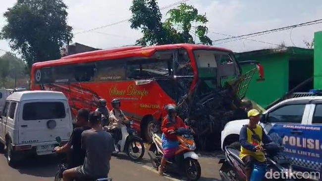Kecelakaan ini terjadi sekitar pukul 13.10 WIB. Salah satu pemilik rumah yang terdampak kecelakaan, Sulis Yastuti (40) mengaku mendengar suara keras. Begitu keluar rumah, ia kaget melihat ada bus yang menyeruduk rumahnya.