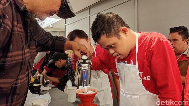 Ada yang unik saat peringatan Hari Down Syndrome Sedunia di Surabaya. Kali ini puluhan anak berkebutuhan khusus (ABK) diajak menyeduh kopi. Ini karena juga bertepatan bersama Hari Kopi Nasional.