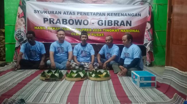 Terpantau sejumlah relawan Bolo Gibran, Bolo Mase di beberapa titik melakukan kegiatan syukuran dan selamatan atas kemenangan paslon 02.