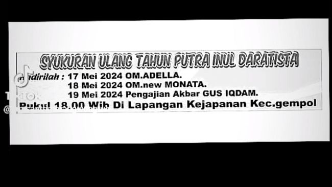 "Bismillah niatnya sih bikin senang warga desa, kampung saya. Kalau ada rezeki, bikin hiburan. Gak apa apa ya biar semua pd kecipratan seneng bisa lihat banyak hiburan gratis," tutur Inul Daratista di akun Instagram-nya seperti dikutip detikJatim, Senin (25/3/2024).