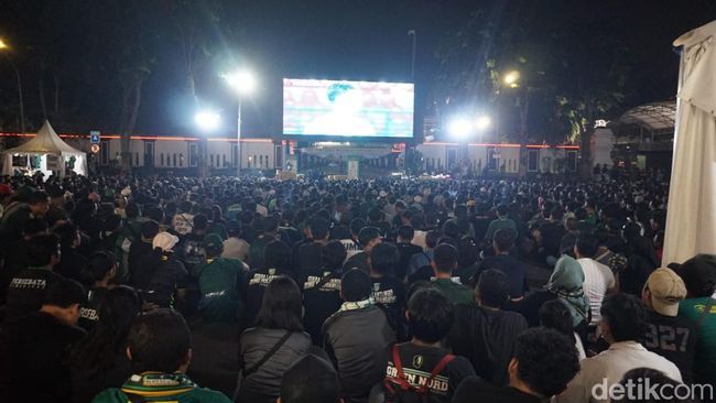 Animo Bonek nonton bareng (nobar) di Polrestabes Surabaya sangat antusias. Kehadiran bonek membludak dan membanjiri halaman Polrestabes Surabaya dan Jalan Sikatan.