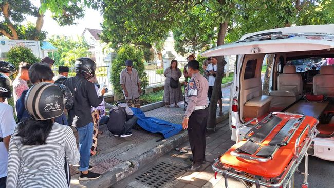 Pria paruh baya mengenakan kaos oblong dan celana komprang tergeletak di trotoar dalam kondisi tak bernyawa. Temuan jasad pria ini menggegerkan Warga Jalan Basuki Rahmat, Kelurahan Lateng, Banyuwangi.