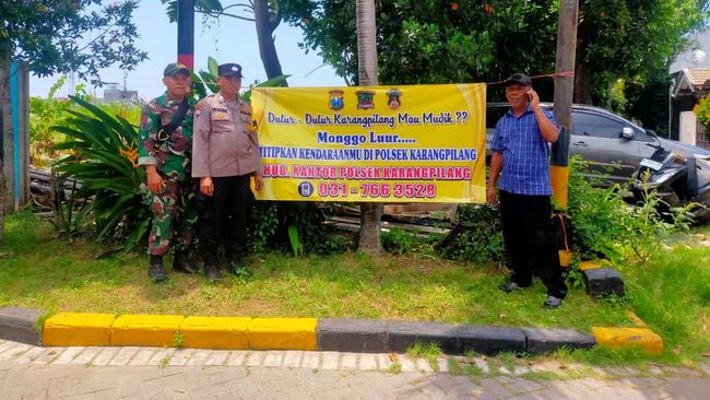 Polsek Karang Pilang membuat program penitipan motor bagi para pemudik. Program tersebut untuk memberikan rasa aman dan nyaman kepada masyrakat yang akan mudik Lebaran 2024.