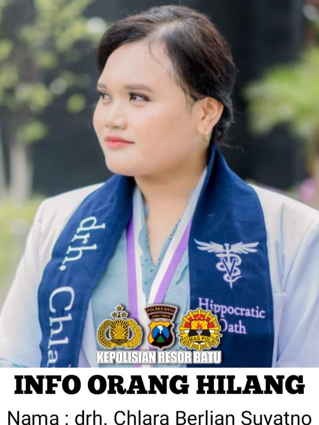 Anak Kabagops Polres Batu yang juga seorang dokter hewan, drh Chlara Berlian Suyatno (24) akhirnya ditemukan. Chlara yang sempat dilaporkan hilang oleh keluarga itu ditemukan di Bandung.