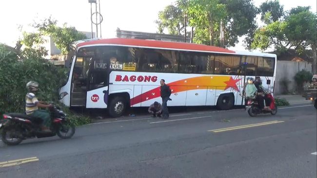 Akibatnya pengemudi bus tidak dapat menghindar, sehingga menabrak sepeda motor tersebut, hingga akhirnya berhenti setelah menabrak pohon di pinggir jalan.
