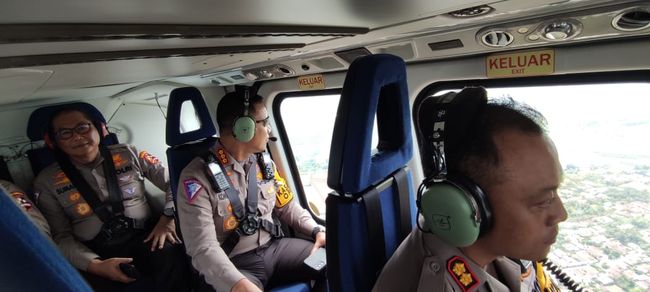 Polisi melakukan serangkaian pemantauan arus lalin saat arus mudik Lebaran Idul Fitri 1445 H. Salah satunya melalui jalur udara.