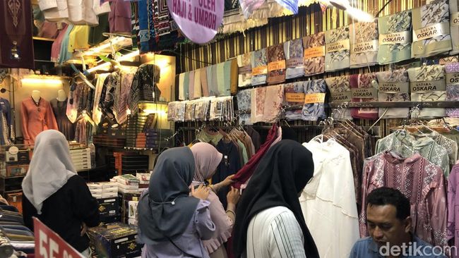 "Dari jam 10 ke sini udah ramai sempat desak-desak an juga mungkin karena hari libur juga ya. Tadi ke sini cari baju lebaran buat anak-anak sekalian cari jajan-jajan," tuturnya.